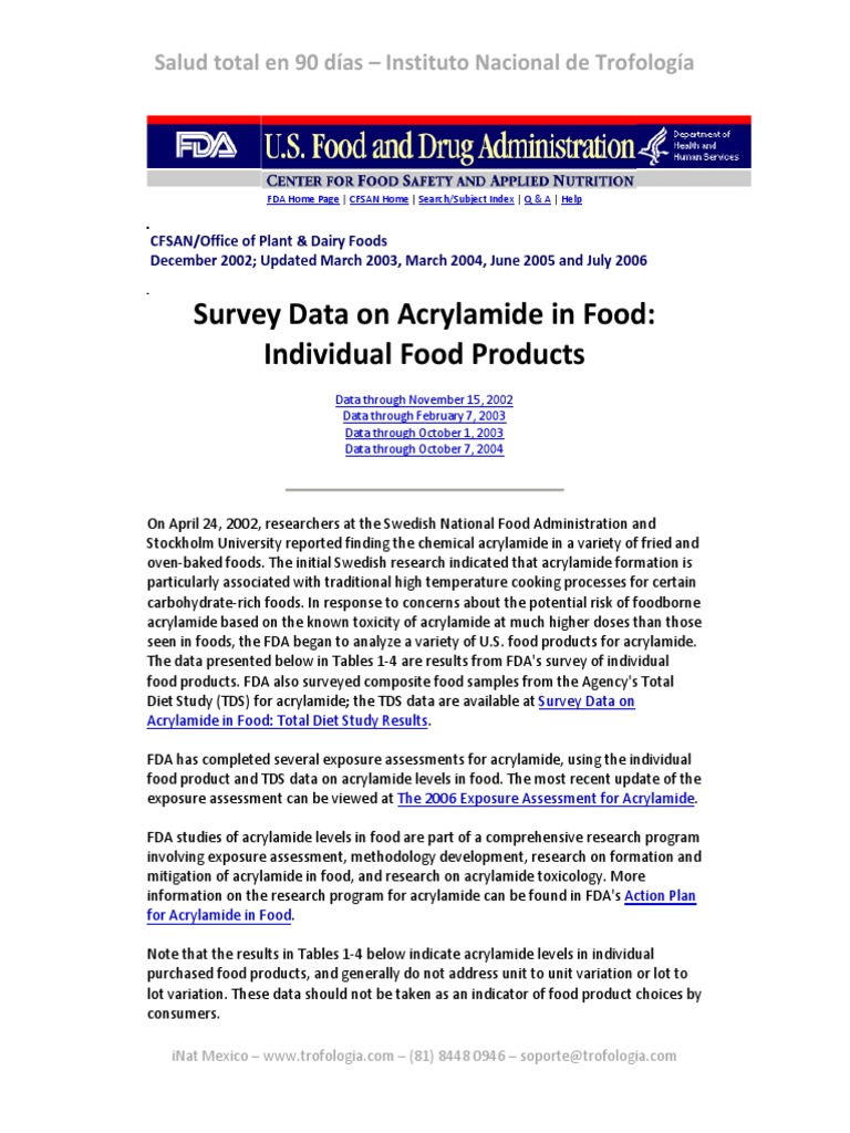 Acrylamide Food Alerts