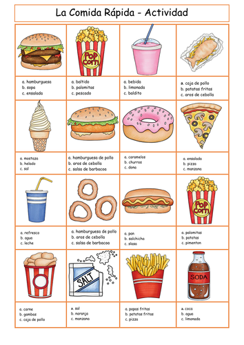 La Comida Rapida Actividades Fast Food Vocabulary Acivities